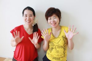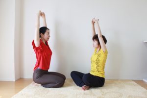 ちーちゃん「ゆるめて、手をかえして、息を吸いながら気持ちよく天上に伸びていきます。」